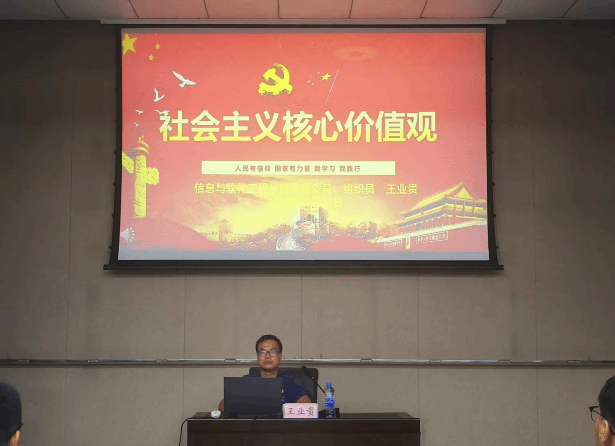 分党校在教五栋108报告厅举办第三期发展对象培训班第三讲党课,主题为《培育和践行社会主义核心价值观》。本次课程由学院党委委员、党委组织员王业贵主讲,培训班全体成员参加。