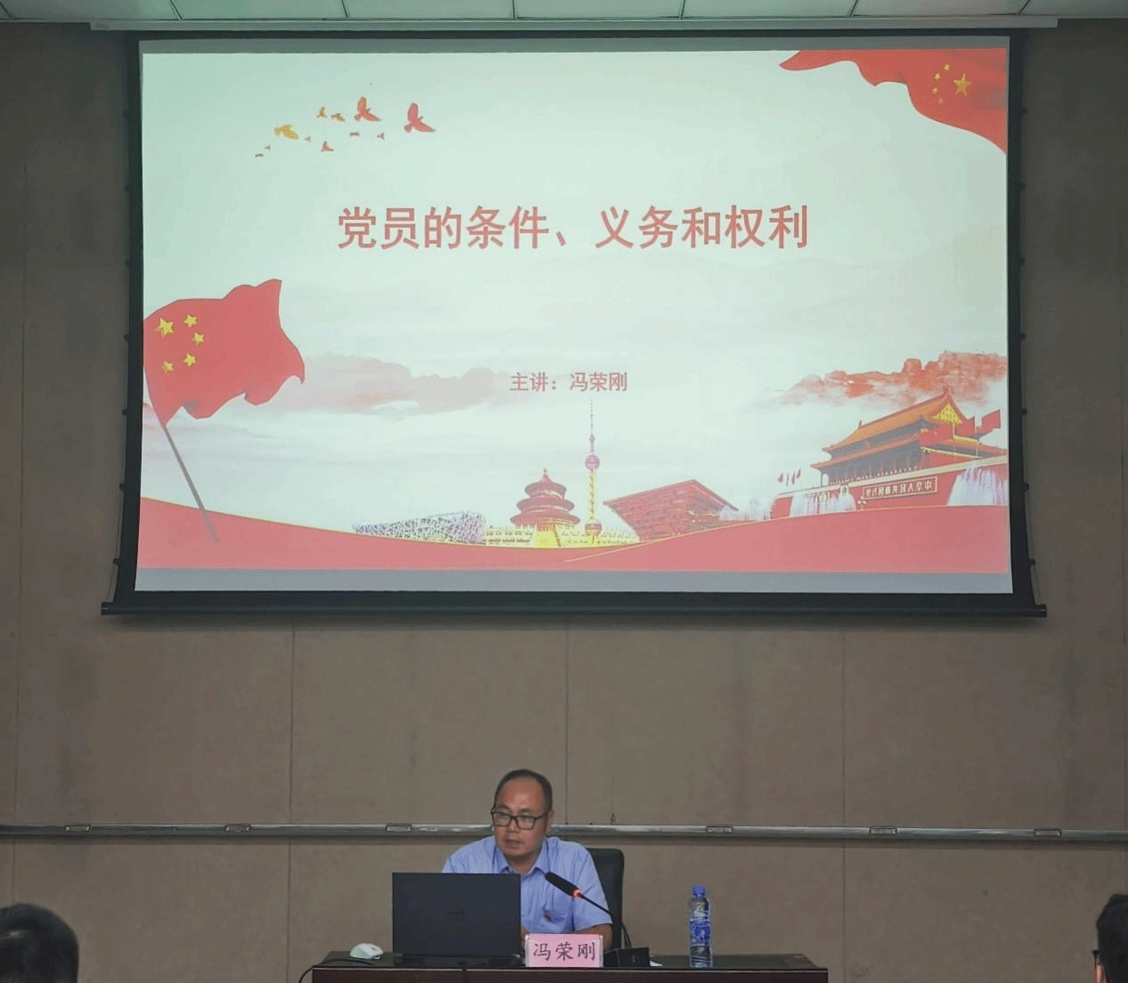 冯荣刚以《中国共产党章程》为主线,结合新时代党员队伍建设的典型情况,系统讲解党员基本条件、八项义务和八项权利的核心内涵、内在逻辑与现实要求。他指出,党员条件是“入门标尺”、义务是“行动准则”、权利是“履职保障”,三者共同构成党员身份的根基。青年发展对象应以义务为镜加强自我约束,以权利为责主动参与组织生活,以“知行合一”扛起使命担当,在奉献实践中体现党员先进性,为学院党建注入持续动能。