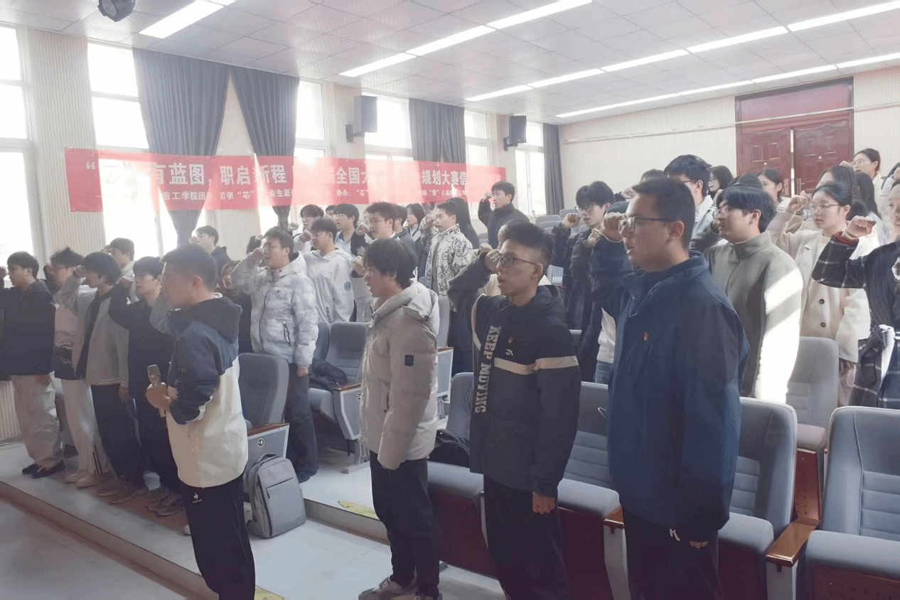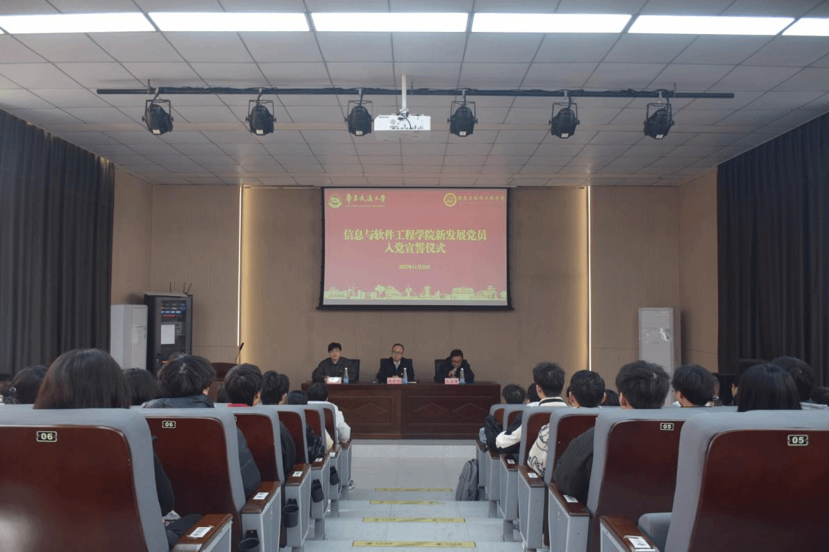 在南区教5栋108室举行2025年第三期新发展党员入党宣誓仪式。学院党委副书记、分党校副校长冯荣刚,党委委员、组织员王业贵,党委兼职组织员刘通及全体新发展党员参加活动。