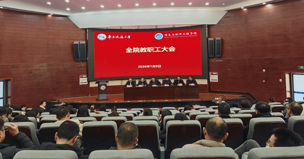 在北区图书馆报告厅召开学期末全院教职工大会,全面总结回顾了过去一年学院工作,进一步明确了2026年工作目标和重点任务。学院领导班子及全体教职工参加会议,会议由院党委书记魏永峰主持。
