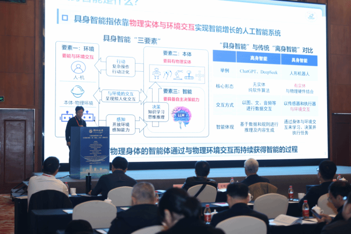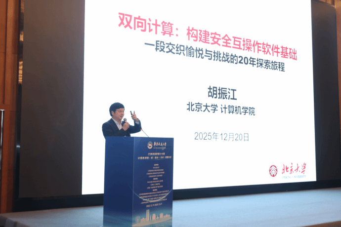 会议特邀了多位国内计算机科学与人工智能领域的领军学者作大会特邀报告,呈现了一场高水平学术盛宴。北京大学讲席教授、计算机学院院长胡振江系统阐述了“双向计算”这一新型计算范式,为构建安全高效的软件互操作提供了创新思路。中国科学技术大学讲席教授、国家杰青陈恩红深入探讨了面向大模型的高质量数据构建方法研究,展示了智能体技术如何补全高价值数据以处理复杂任务。华中科技大学教授、国家杰青白翔,分享了在三维场景感知、推演与决策闭环方面的最新突破,勾勒出从“看懂世界”到“执行任务”的具身智能完整技术路径。