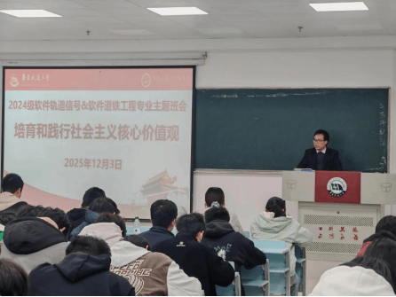 为深入推进社会主义核心价值观教育,引导青年学子构建科学价值体系,12月3日,2024级软件轨控与道铁专业在北区31栋214教室联合举办“培育和践行社会主义核心价值观”主题班会。