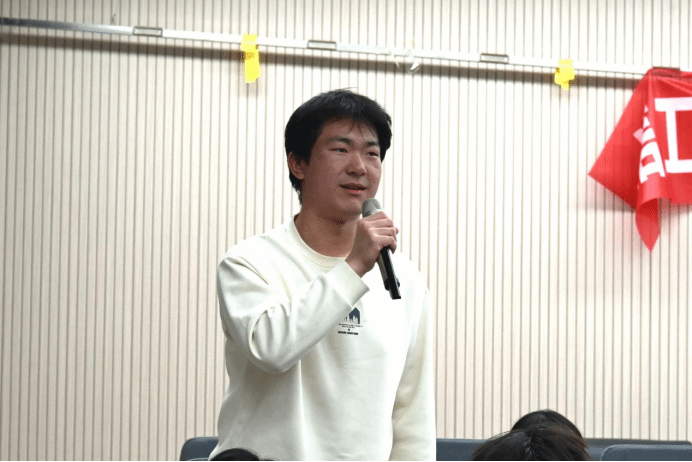 在互动交流环节,同学们踊跃举手,就AI技术发展、职业规划等话题积极提问。其中,赵文杰同学提出了“AI替代焦虑”这一普遍困惑。吴桐老师耐心解答,指出AI是效率工具而非创造主体,青年应聚焦复杂问题建模、系统架构与伦理判断等核心能力,在“人机协同”中筑牢不可替代的专业价值。